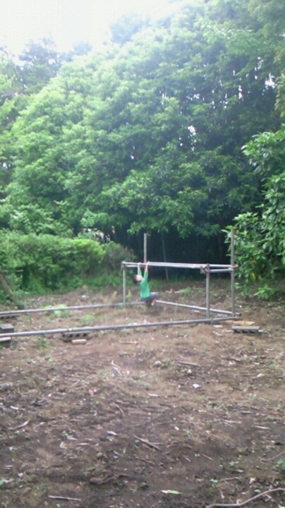 うちのお義父さんが仕事で単管を使っていないのでくれるっていってくれたので、下地は単管で作ることに